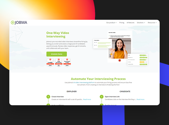 Jobma specializes in zero-touch hiring, offering unlimited pre-recorded video interviews with AI-driven screening and automated shortlisting. It’s ideal for companies looking to automate early-stage candidate evaluations.