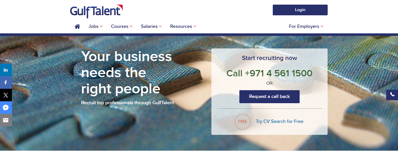 GulfTalent is a recruitment platform for connecting employers with top talent across the GCC region. The platform allows recruiters to access over 10 million CVs, helping companies source both local and expatriate talent. GulfTalent also provides employer branding features to improve visibility.