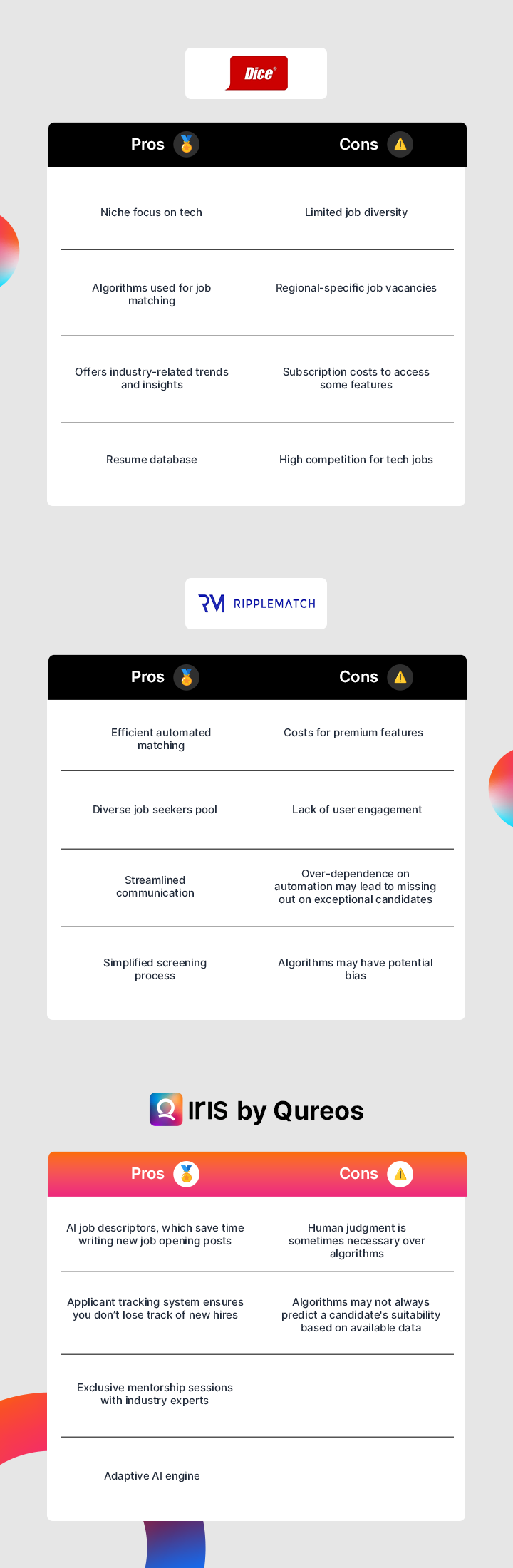 Pros and Cons of Choosing Dice, Ripplematch and Iris by Qureos