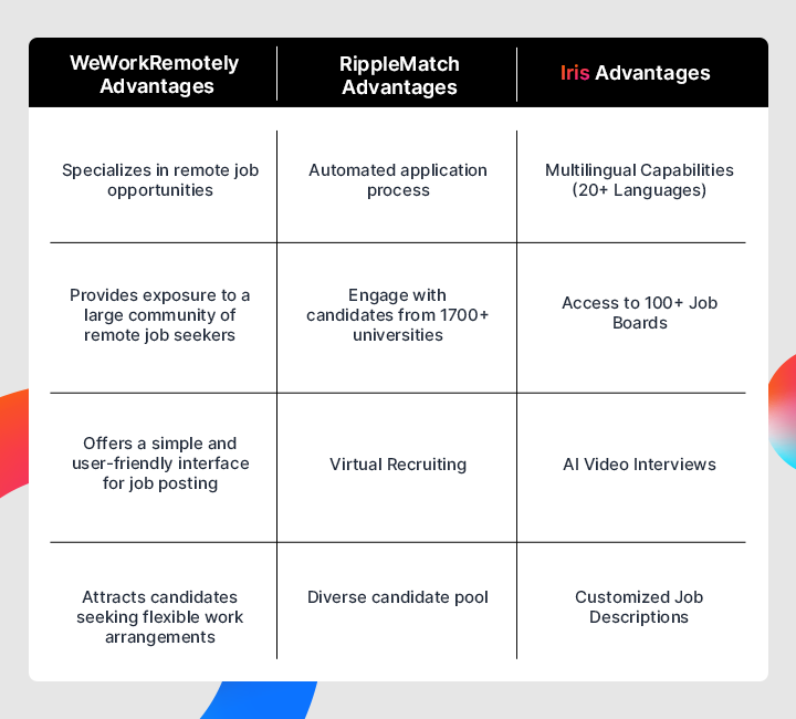 What are the Advantages of Ripplematch, We Work Remotely and Iris by Qureos?