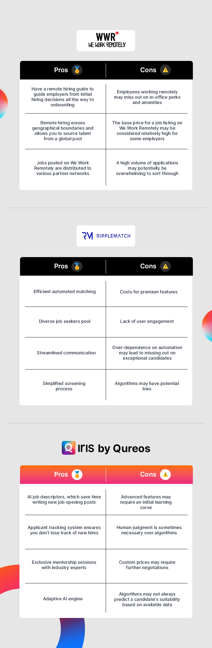 Pros and Cons of Choosing Ripplematch, We Work Remotely and Iris by Qureos