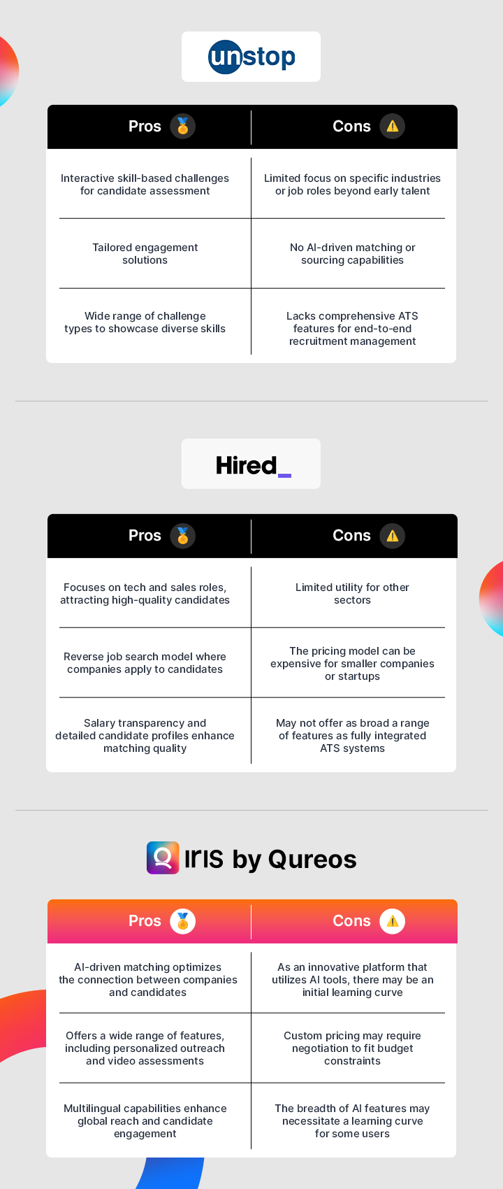 Pros and Cons of Choosing Hired, Unstop and Iris by Qureos